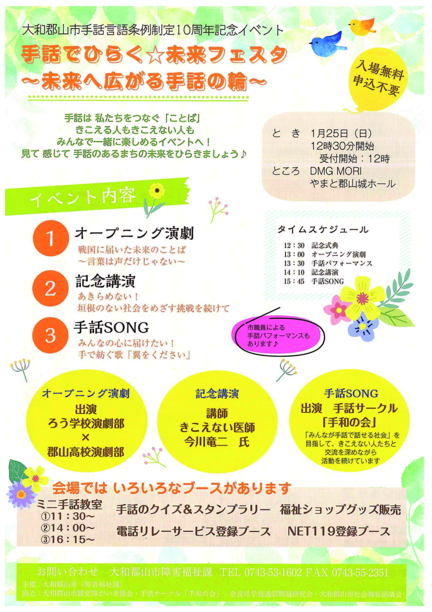 毎年1月の第4日曜日に開催している奈通研まつり。今回は、大和郡山市手話言語条例制定10周年記念イベント「手話でひらく☆未来フェスタ~未来へ広がる手話の輪~」に協力する形で行います!