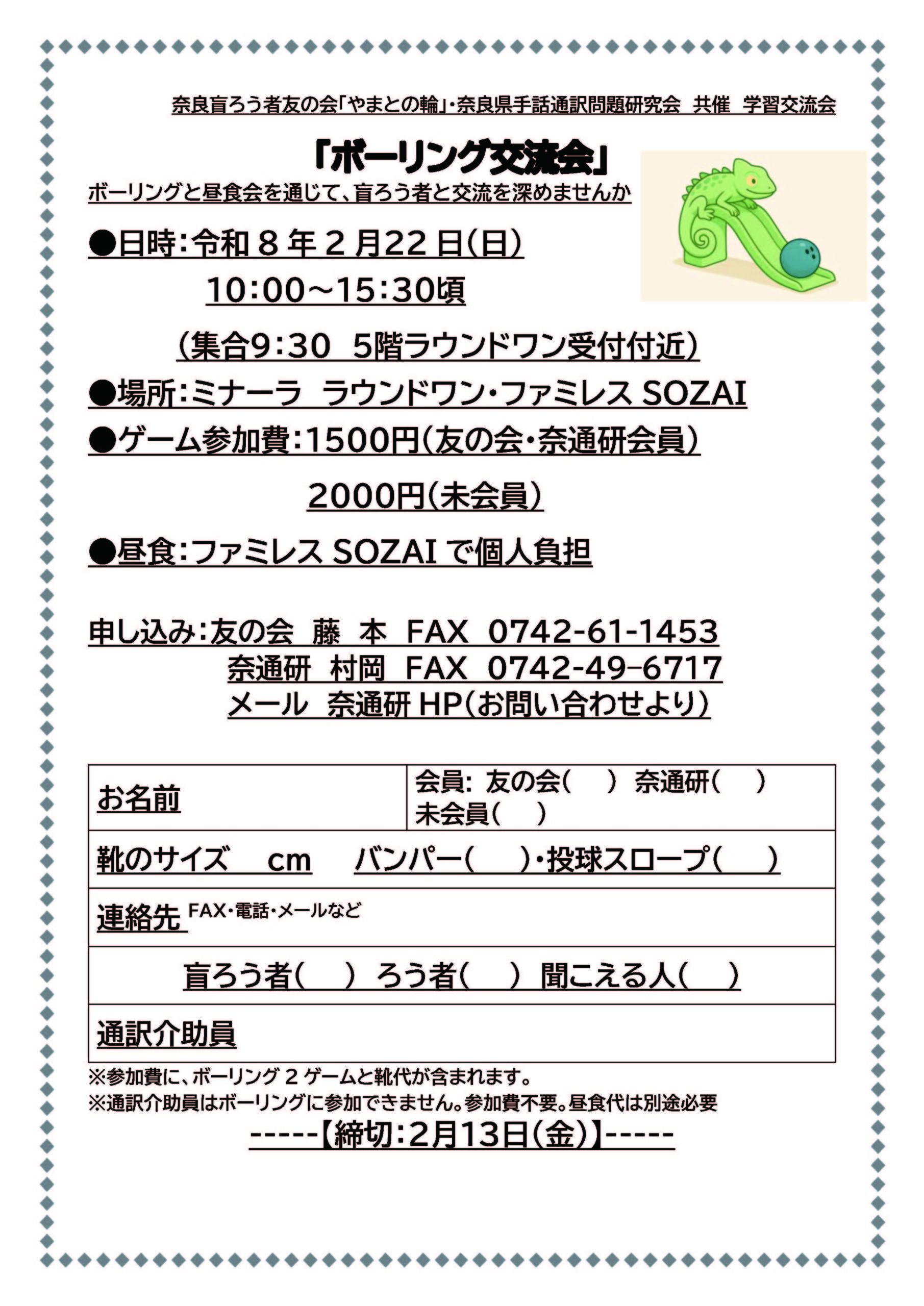 ボーリング交流会 ※申込締切2/13